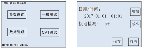 時間設(shè)置:打開儀器后直接點擊“參數(shù)設(shè)置”(如圖5-11)進入時間設(shè)置界面。進入時間菜單(如圖5-11)后,點擊想要修改的時間數(shù)據(jù)項目上,然后再按增加、減小鍵調(diào)整相應(yīng)的“時” 、“分” 、“秒” ,最后點擊保存修改時間設(shè)置,點擊取消退出設(shè)置并返回主界面。
