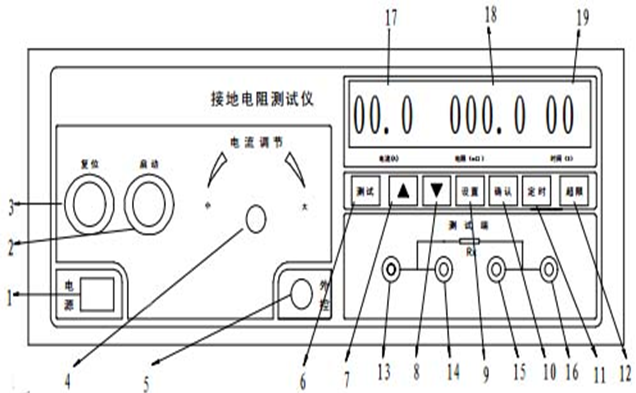 17、電流顯示窗口 :開關柜接地電阻測試儀顯示輸出電流值的大小。