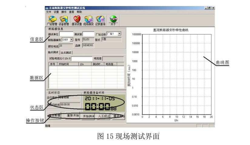 直流斷路器安秒特性測試儀現(xiàn)場試驗(yàn)操作界面